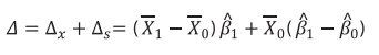 Métodos de decomposição Oaxaca-Blinder (1973), aplicadas às regressões dos dois grupos, tal como na equação (2), permitem realizar a decomposição agregada dos diferenciais totais em dois componentes (equação 3):