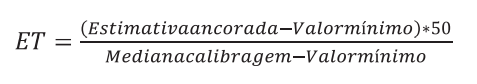 1) Quando a estimativa do grupo ancorado for igual à mediana do grupo de calibragem, ela será representada pelo escore transformado 50.