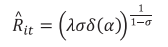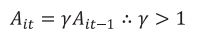 (5)In certain situations, the innovation carried out does not achieve the expected result and the improvement is not accepted in the market. In this case, productivity does not increase and is assumed to remain unchanged, Ait=Ait-1. The size of innovation is given by the parameter, exogenously determined. To increase the chances of a successful innovation, the entrepreneur funds research activity through large investments in R&D, which is represented by the variable Rit. Thus, the greater the effort in innovation through applying considerable resources, the greater the chances of success for the research and, therefore, for the new technology. The function that captures the probability of innovation success is called ‘innovation function’: