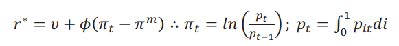This model assumes that the monetary authority acts by controlling the monetary policy in order to converge the current inflation toward the center of the target set. Thus, the deviation caused between current inflation and the center of the target determines the position of the authority to increase or reduce the interest according to the direction of the deviation. This relationship can be expressed as the change in the interest rate (r *):
