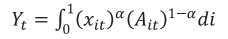 The final product is created using a flux “i” of intermediate inputs (xit) continuous under the condition