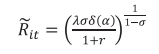 (12c)As in Equations (12b) and (12c), the interest rate acts discounting the effective value of the investment, reflecting a smaller amount of allocated resources in R&D activities and, consequently, in the success of innovation (measured by probability).