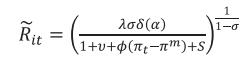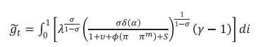 (16)As Equation (16), a persistent rise in inflation above the target prompts the monetary authority to increase interest rates and, consequently, the demand for investments in R&D decreases. With higher interest rates, the cost of capital rises, reducing demand and efforts in innovation. This reduction, in turn, implies a lower probability of success of the innovative entrepreneur, restricting the rate of technical progress in the industry.