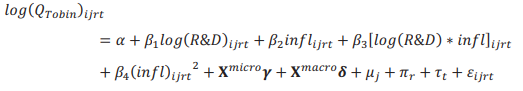 The model results indicate a negative effect between inflation on the demand for R&D and, hence, the rate of technological progress. In the empirical exercise model, the results reveal that inflation reduces the elasticity coefficient of R&D in the market value of firms. Moreover, a non-linear relation is identified between inflation and the value of firms; low and moderate levels have a positive relationship with the value, while high levels imply reduction. The study’s findings indicate that modest inflation may have a positive alignment with the firms’ value strategy, but with a negative result on the investment in applied R&D (elasticity coefficient).