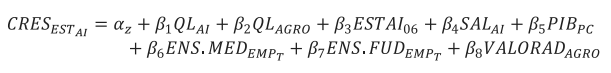 Para analisar o crescimento da agroindústria brasileira em sentido amplo2 no período de 2006 a 20163 considerando as 558 microrregiões, utiliza-se o seguinte modelo: