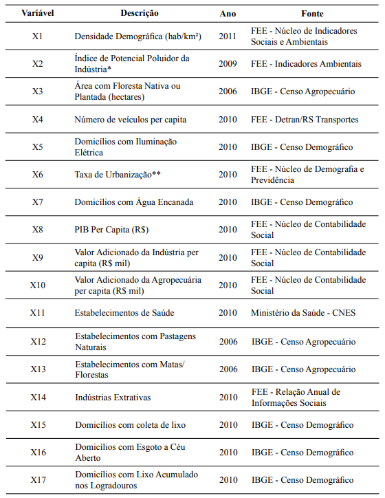 Rossato, M. V. (2006). Qualidade Ambiental e Qualidade de Vida nos Municípios do Estado do Rio Grande do Sul. (Tese de doutorado). Universidades Federal de Viçosa, MG, Brasil.