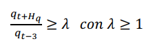 1. El TCR (qt) en un determinado mes (t) exhibe una variación trimestral acumulada superior a un umbral mínimo ψ>0. En términos formales: