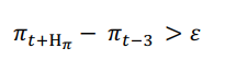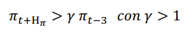 1. Transcurrido el horizonte la tasa de inflación (interanual) exhibe un incremento de al menos veces con respecto a la tasa de inflación anual al comienzo del episodio (t-3):