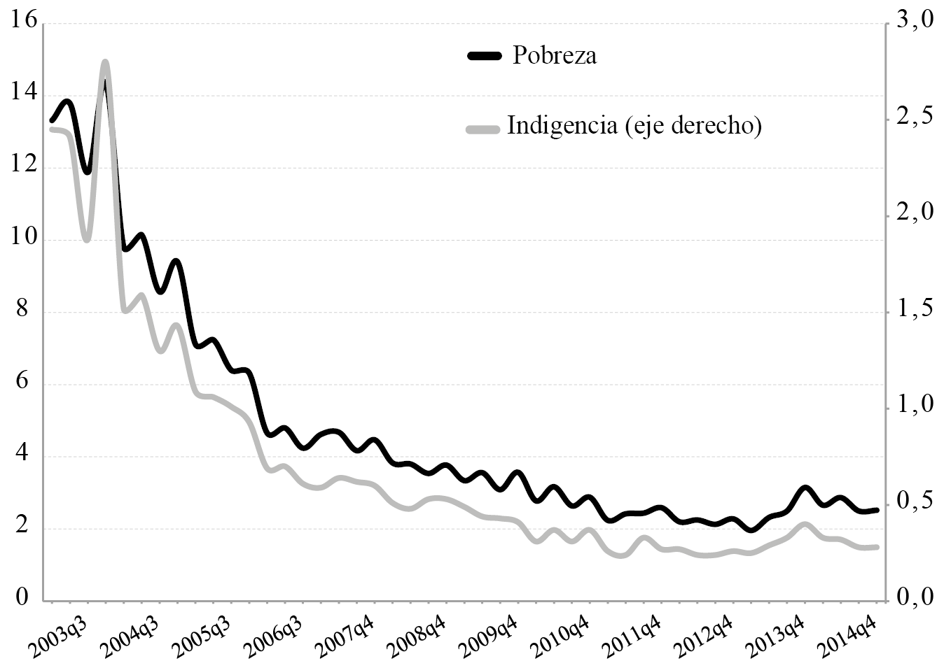 La historia posterior es bastante conocida. La combinación de un contexto internacional favorable con políticas internas expansivas permitió una fuerte y rápida recuperación, que posteriormente se convirtió en crecimiento económico. Este comportamiento se reflejó en las condiciones sociales, pues hacia 2011 la pobreza se ubicó por debajo del 20% de la población, mientras que la indigencia alcanzaba a menos del 5%. Sin embargo, en los años posteriores, junto con la desaceleración de la actividad económica, las mejoras sociales se ralentizaron, hasta interrumpirse.