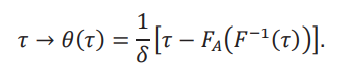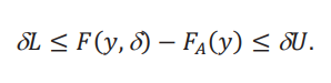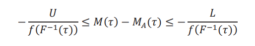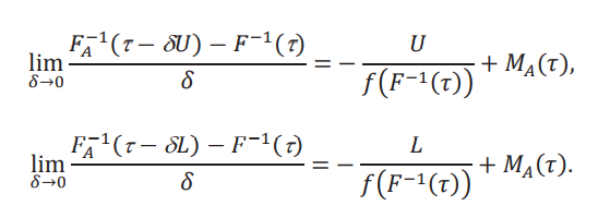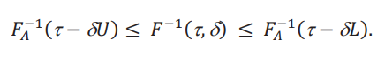La utilidad de esta desigualdad para acotar los cuantiles de la distribución contrafactual 𝐹(𝑦,δ) es que podemos usar los cuantiles de 𝐹𝐴(𝑦), que se pueden calcular de los datos. Denotamos estos cuantiles de la distribución aparente por 𝐹A−1(𝜏).