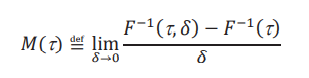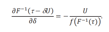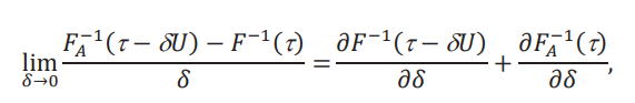 Estos límites son derivadas con respecto a 𝛿, evaluadas en 𝛿 = 0. Es importante notar que 𝛿 juega un rol doble: en el argumento de 𝐹A−1 y en la construcción de la función aparentemente. Por lo que la derivada con respecto a 𝛿 es la suma de las derivadas parciales. Para el caso de la primera ecuación, tenemos: