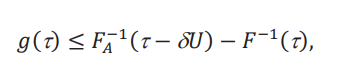 porque en ese caso el efecto global vive por encima de 𝑔(τ). Esto nos permite encontrar un valor límite de 𝑈, que denotamos 𝑈(τ), donde la desigualdad anterior se cumple con igualdad:
