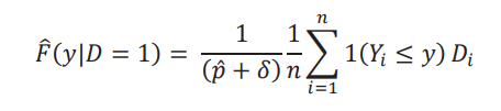 Vamos a suponer que tenemos una muestra i.i.d. que consiste de {𝑌𝑖, 𝐷𝑖, 𝐷𝛿𝑖}i=1𝑛 . Para estimar 𝜃(𝜏), empezamos con el cuantil 𝜏 de 𝑌: