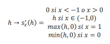 La idea es que, como el mapa original es una función lineal por partes, entonces r(x + ℎ) − r(x) = r′x(ℎ). Entonces la diferencia depende de donde estamos en el dominio, el valor de x, y de hacia donde nos movemos: a la derecha, con un ℎ > 0, o hacia la izquierda, con un ℎ < 0. Para el caso de 𝑠(x), de igual manera tenemos: