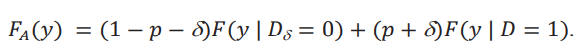 donde hemos usado el hecho que en 𝛿 = 0, la distribución aparente 𝐹𝐴es la distribución de 𝑌. Para el primer término tenemos
