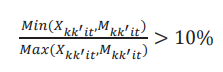 Fontagné e Freudenberg (1997) estabeleceram que o intercâmbio de uma determinada indústria só será considerado intraindustrial, portanto de duas vias, se o menor fluxo (exportação ou importação) representar mais de 10% do fluxo maior. Caso contrário o nível de solapamento é considerado insignificante e o intercâmbio será classificado como interindustrial, ou seja, de via única. Algebricamente esta condição pode ser escrita da seguinte forma: