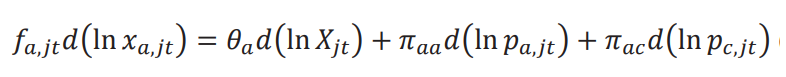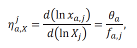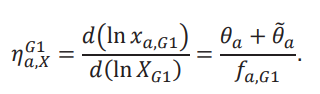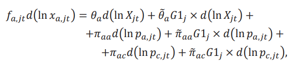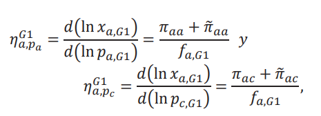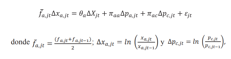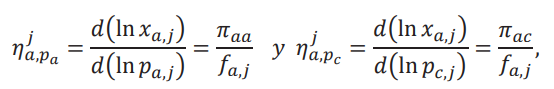 Si bien los parámetros, y se suponen equivalentes para todos los importadores, las elasticidades de demanda pueden variar en función de la participación de cada origen en el total importado. De esta forma, las elasticidades precio, propia y cruzada, de la demanda de importaciones de origen argentino para el país importador j vienen dadas por