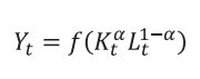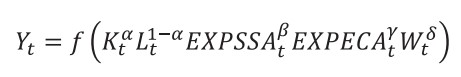 (1)where Yt is economic output (measuring economic growth), Kt represents capital, and Lt denotes labour. The subscript t represents time whereas α and (1-α) are the elasticities of capital and labour respectively. Equation (1) is then modified to include the variables of interest – export destinations, as well as other control variables that are likely to affect economic growth – as specified in Equation (2).