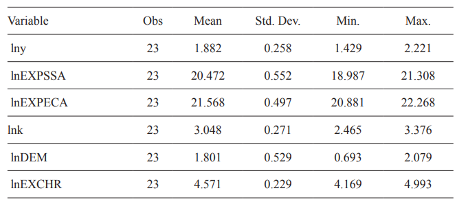 The study uses secondary annual time series data spanning the period 1996-2018; the period for the study is influenced by data availability. The sources of data for the study are World Bank’s World Development Indicators (WDI), World Bank’s World Integrated Trade Solutions (WITS) database, and Polity5 project. Specifically, data on economic growth, capital and exchange rate are obtained from WDI, data on exports to SSA and ECA are sourced from WITS database and that of democracy is obtained from Polity5 project.