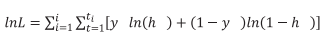 We incorporated a set of dummy variables to account for the duration intervals of each spell, since the underlying baseline hazard is unknown. Empirically, a Gaussian error term is introduced as a random-effects indicator that deals with the problem of unobserved heterogeneity (frailty). Concretely, region and year fixed effects are also included to control for endogeneity problems. We estimated the discrete-time proportional hazard model by maximizing the following log-likelihood function: