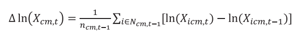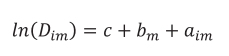 , sendo w o custo do insumo (ex: salário); , em que Pm é o índice de preços ideal do mercado m e Ym é o gasto total no mercado m, considerado um componente específico de mercado, que é comum a todas as empresas; aim = ln(Aim) é o atrativo do produto, da firma i no mercado m, que é observado posteriormente ao primeiro ano de exportação da empresa. Por simplificação, assume-se que os três componentes de ln(Dim) não variam no tempo.