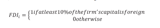 (1)where FDIijk is the dependent variable, which indicates if firm k in country i and sector j is foreign-owned or local. Then, in accordance with the IMF definition of FDI, this variable can take the following values: