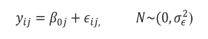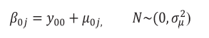 (2)O termo y00 representa a média global, µ0jsão os desvios da média das condições do departamento, j. Nesse caso, é possível observar que para cada departamento j existe um β0j relacionado.