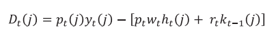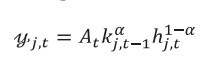 A fim de produzir o bem intermediário j, a firma combina unidades dos insumos capital e trabalho. Assim, assumindo a hipótese de que o mercado de fatores seja competitivo, a função de produção do tipo Cobb-Douglas da firma que produz bens intermediários é dada por: