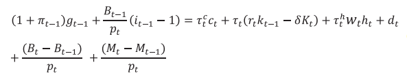 (22)Dentro desta dinâmica, resolvendo a restrição orçamentária do governo e combinando a uma condição No-Ponzi5, onde: