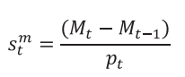 é a despesa financeira com os juros sobre a dívida, enquanto e são as respectivas receitas decorrentes da colocação dos títulos públicos e da emissão monetária entre dois períodos.