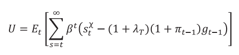 representa o fator de desconto intertemporal em que o governo avalia a utilidade dos seus gastos no presente em relação aos gastos no futuro. Na função utilidade, a expressão