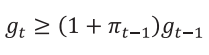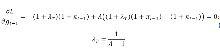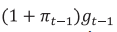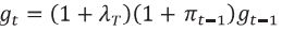 é a equação da regra para o teto dos gastos primários, considerando que o crescimento do gasto corrente do governo no tempo t depende da taxa de inflação em t - 1. Por outro lado,
