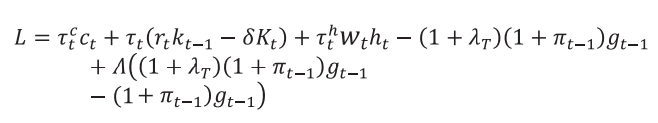 Além da consideração de uma regra de política fiscal de longo prazo baseada em De Resende e Rebei (2008), o modelo incorpora uma regra fiscal para o teto dos gastos primários na restrição de recursos intertemporais do governo, que pode ser expressa da seguinte maneira: