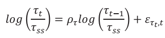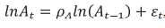 seguem um processo estocástico AR(1), dado pela razão entre o logaritmo delas em relação aos seus valores estacionários, definidos por: