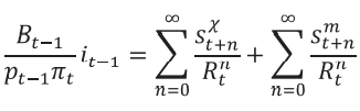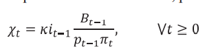 (24)Na regra de política (24), onde Xt é a parcela do endividamento do governo lastreado pelos superávits primários, o valor presente destes é ajustado em todos os períodos no montante necessário para financiar uma fração constate da dívida do governo. Como a restrição orçamentária intertemporal do governo deve ser respeitada, tem-se que: