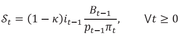 e a parcela nominal de títulos do governo é representada por bt, sendo a taxa nominal de juros da economia que remunera estes títulos dada por it-1 . Quanto à renda destinada aos fatores de produção, rt mede a rentabilidade do estoque de capital kte wté o salário real que remunera as horas trabalhadas. Ademais, como as famílias são proprietárias das firmas, estas têm direito a receber os dividendos reais