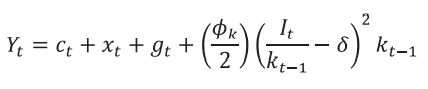 Quanto à contribuição ao modelo teórico, este incorporou algumas inovações em relação ao modelo original, principalmente na parte que define as ações do governo. Neste aspecto, incluiu-se uma regra de política fiscal para o teto dos gastos públicos com base na PEC 55/241. Ao contrário do modelo do De Resende e Rebei (2008), os gastos do governo foram assumidos como endógenos a partir da definição do problema de otimização intertemporal, de modo que as decisões do governo, a partir de uma função utilidade, se restringem ao cumprimento da nova regra fiscal balizada pelo parâmetro .