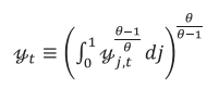 Utilizando a agregação padrão de Dixit e Stiglitz (1997), com elasticidade de substituição constante entre os diferentes bens e