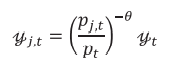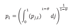 (5)A expressão (5) representa a demanda por bens intermediários diferenciados. Substituindo-a na função de produção (3), o preço do bem final é determinado pela regra de precificação: