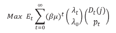 Seguindo a regra definida no modelo de De Resende e Rebei (2008), foi introduzida uma rigidez nominal de preço a la Calvo (1983). Neste caso, sempre que for permitido, a firma otimiza o preço do bem no momento t a fim de maximizar a soma descontada dos dividendos futuros, em que o problema de maximização de lucro é definido da seguinte forma: