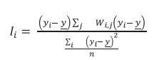 However, global autocorrelation can omit statistically significant behavior patterns at the local level, which is why local spatial autocorrelation indexes have been created with the ability to identify differentiated spatial association regimes. The most widely used of these is the Local Moran’s Index described by the following equation:
