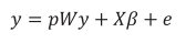 (8)Where y is a column vector; n is the number of observations in the sample for the response variable yi;Xβ represents the set of explanatory variables and the beta parameter; p is the scalar coefficient that corresponds to the autoregressive parameter, which is interpreted as the dependent variable average effect, referring to the spatial neighborhood of the region (the Alagoas state). On the other hand, it is equivalent to a column vector containing residuals from the equation.