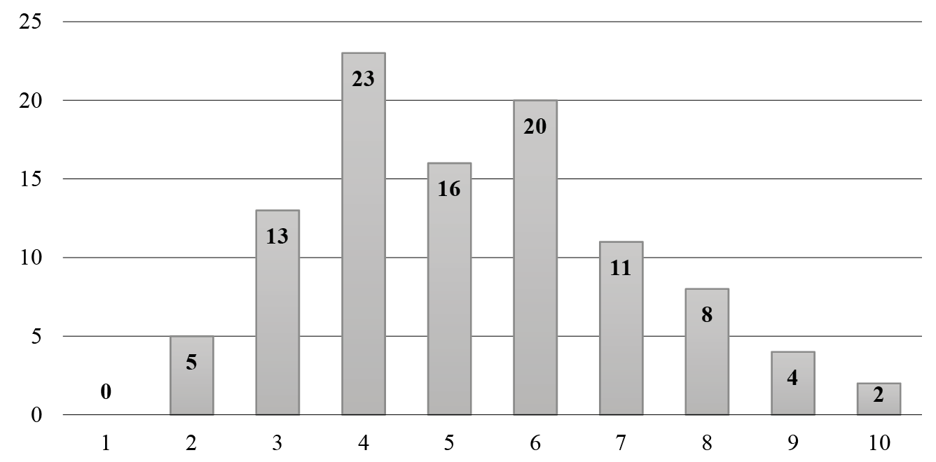 Firstly, to analyze the neighbors, we created a first-order Queen-type weight matrix, which was found to be better suited to data. Figure 2 shows the histogram of the first-order Queen matrix with the number of neighbors and frequency (between 2 and 11 neighbors).