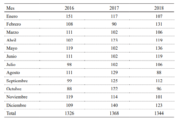 En el siguiente apartado se presentan algunas estadísticas provenientes de la base de microdatos de defunciones para los años 2016, 2017 y 2018, en donde se puede caracterizar los fallecimientos según edad, sexo, mes, tipo de víctima, tipo de vía, y vehículo21.