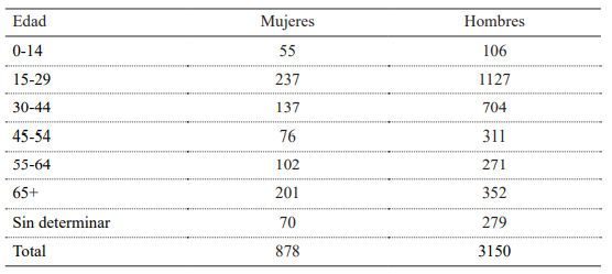 Por otra parte, en la tabla A.2 se puede observar que la mayor parte de las víctimas son varones de 15 a 29 años, que representan el 28% de los fallecidos totales. Además, la cantidad total de varones fallecidos más que triplica a la de las mujeres.