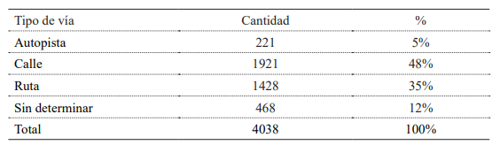 Asimismo, en la tabla A.3 se puede ver que la gran mayoría de las muertes ocurre en calles y rutas (48% y 35%, respectivamente), aunque no es posible concluir la magnitud del riesgo diferencial a menos que se controle por la exposición al riesgo en cada caso.