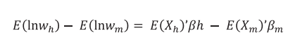 Jann (2008), denota que a diferença no logaritmo do salário é a diferença do valor esperado do logaritmo do salário entre o grupo de homens e o grupo de mulheres, portanto: