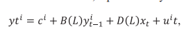 (2)where ciis a constant vector M × 1; B(L) and D(L) are polynomial matrices in lag L; and uiis a vector M × 1 of reduced-form residuals and var (ui)=Ʃt.