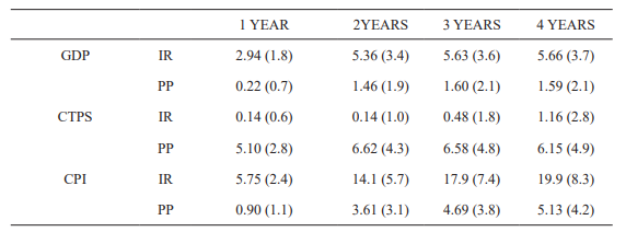 These inferences are reinforced in Table 1, which presents the variance decomposition to observe the relative importance of policy tools in explaining the volatility of the variables.