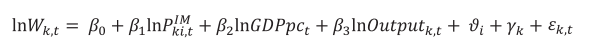 (3)where Wk,t refers to the total wage bill2 paid by a set of firms producing good k3 in the importing country (Brazil) at time t (1997-2016), as in Brambilla and Porto (2016) and Flach (2016)4.